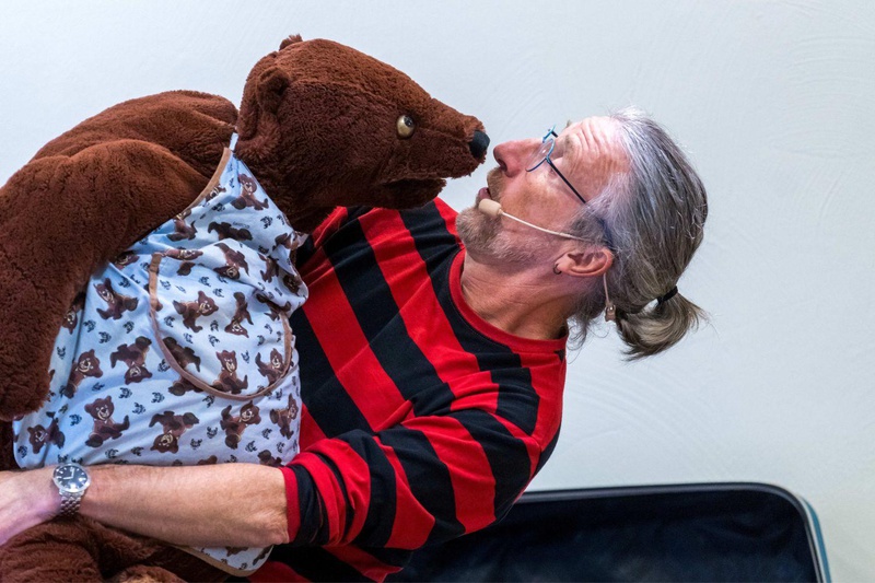 Lorenz Pauli kommt und erzählt, falls er nicht von seinem Bären gestört wird. Was durchaus sein könnte. Vorgesehen wäre eine bunte Mischung. Vielleicht die Geschichte vom Dachs und seinen lieben Dingen. Oder von der fröhlichen Winternacht. Vielleicht zeichnet Pauli sogar eine Geschichte?